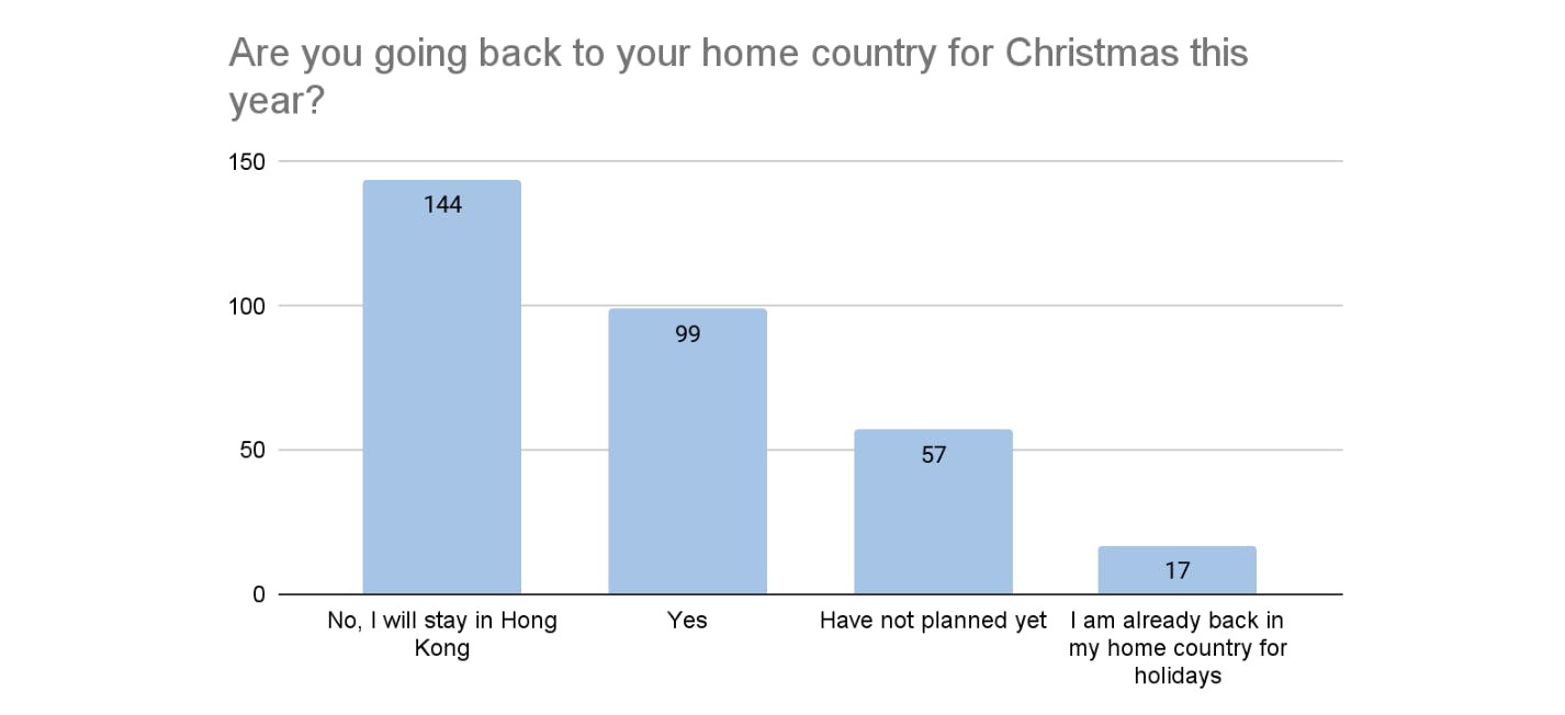With the end of Covid-19 restrictions, 31.2% of respondents answered that they were going home for Christmas this year, while 5.4% declared already being home for holidays. However, 45.4% are going to stay in Hong Kong once again. Mahee Leclerc, General Manager of HelperChoice comments: